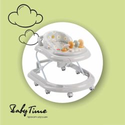 Хорошо держащая форму спинка не портит осанку ребенка , а мягкое сиденье в веселый горошек дарит комфорт. Тем не менее, не рекомендуется оставлять малыша в ходунках дольше, чем на 15 минут, нужно делать паузы.