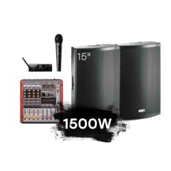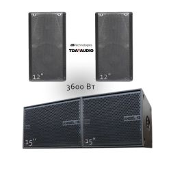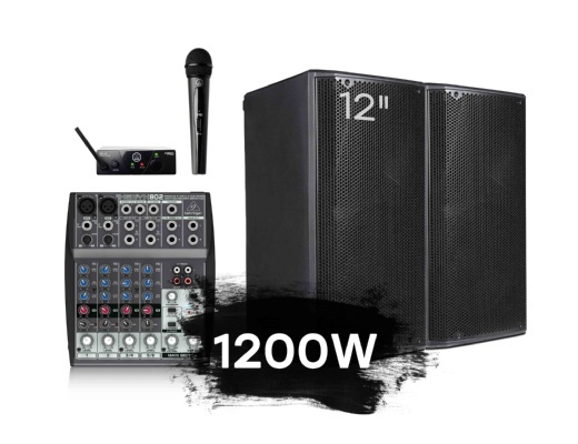 Профессиональный комплект активного звукового оборудования, созданный для качественного музыкального оформления средних мероприятий. Мощности 1200 Вт достаточно, чтобы обеспечить плотное покрытие звуком в кафе, банкетном зале или на летней площадке. Система настроена на максимальную разборчивость речи ведущего и динамичное воспроизведение танцевальной музыки с глубоким, мягким басом.